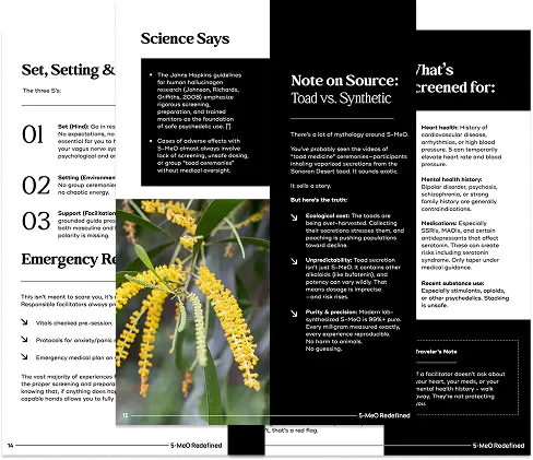 See what research reveals about 5-MeO's unique ability to reduce depression, anxiety, and stress while producing experiences of unity and ego dissolution that participants rate as life-changing.